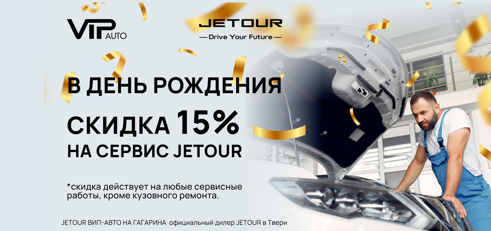В ДЕНЬ РОЖДЕНИЯ СКИДКА 15% НА СЕРВИС JETOUR